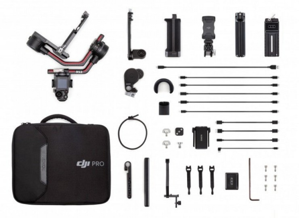 кабель живлення USB-C (20 см) х 1; чехол для оси поворота х 1; подовжувач рукоятки / штатив (металевий) х 1; стабілізатор; рукоятка BG30 х 1; ремінь для зубчастого кільця DJI Focus х 1; портативна ручка х 1; підставка для камери х 1; передавач зображення х 1; набір із стержневим кріпленням для мотора фокусування х 1; мотор фокусування х 1; стрічка Velcro x 3; кришка для порту RSA/NATO х 1; кріпильний ремінець для об'єктива х 1; кейс; 6 x гвинт М4 (10 мм); кабель для керування камерами (USB-C, 30 см) х 2; кабель для керування камерами (Sony Multi, 30 см) х 1; кабель для керування камерами (Mini-USB, 30 см) х 1; кабель для керування камерами (Micro-USB, 30 см) х 1; кабель USB-C; кабель Mini-HDMI — Mini-HDMI (20 см) х 1; кабель Mini-HDMI — Micro-HDMI (20 см) х 1; кабель Mini-HDMI — HDMI (20 см) х 1; тримач телефону; гвинт з напівкруглим кільцем для камери, 1/4"-20 х 2; швидкознімна площадка (Arca-Swiss/Manfrotto) х 1; адаптер для кріплення «холодний башмак» 1/4''-20 х 1; 1 x гвинт 1/4"-20; 1 x шестигранний торцевий ключ (3 мм)