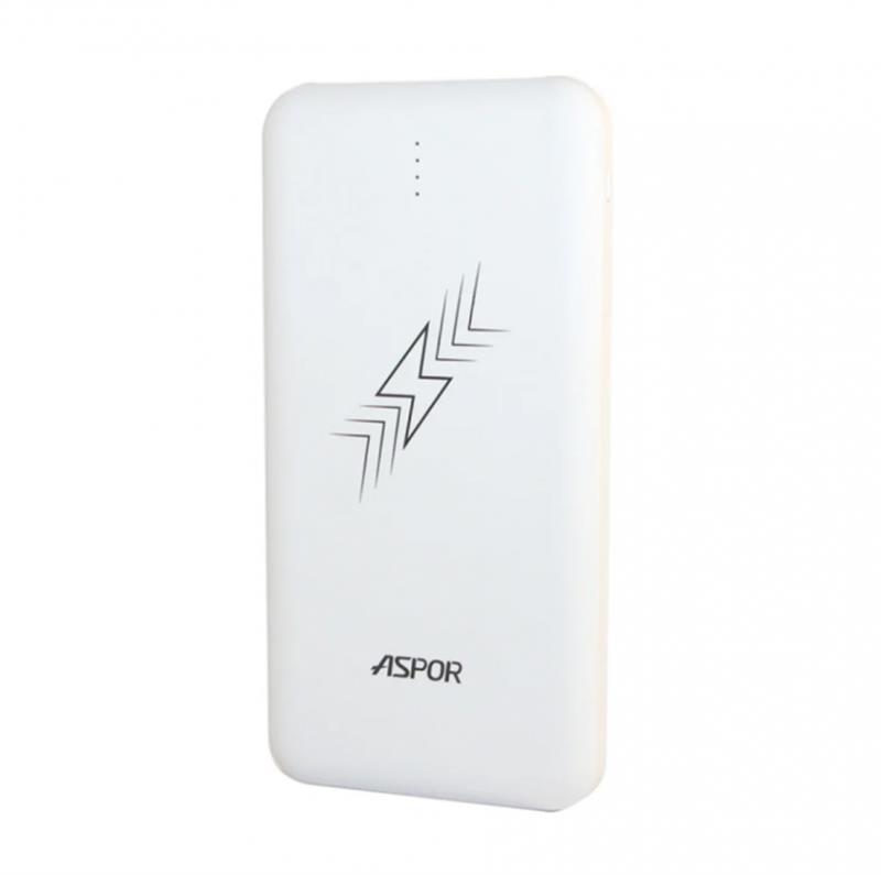 Power Bank Aspor-A336W 8000mAh iQ (iPhone / micro input 2USB / 2.4A + 2.4A) - універсальний зовнішній акумулятор для зарядки будь-яких мобільних пристроїв за допомогою перехідників microUSB і Lighting, і для бездротової зарядки (wireless charging) смартфонів, у яких вона підтримується . Акумулятор здатний двічі повністю зарядити смартфон. Сам він заряджається від мережі через USB кабель протягом 6-7 годин.