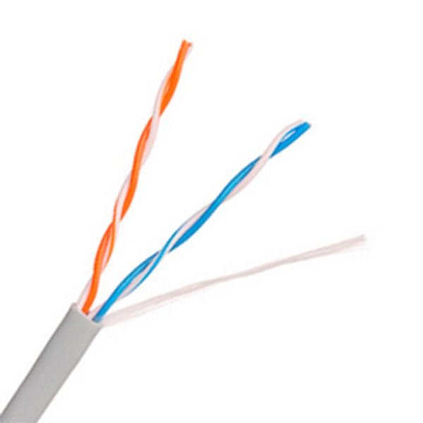 Сетевой кабель UTP (витая пара без экрана). 4 жилы по 0.48мм. Не экранирован. Материал проводника - медь (Сu). Внешняя оболочка - ПВХ. Бухта - 305 м. Напряжение - до 60В. Сопротивление 32 Ом / 305м