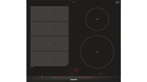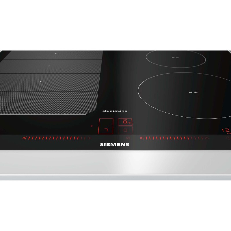 Індукційна варильна поверхня Сіменс з функцією розпізнавання наявності посуду. Функція powerManagement, функція powerMove Plus. Сенсор смаження fryingSensor Plus з 5 рівнями потужності. Функція збільшення потужності powerBoost для всіх конфорок і функція збільшення потужності нагріву сковорідок рanBoost. Сенсорне управління зонами розширення Dual lightSlider.