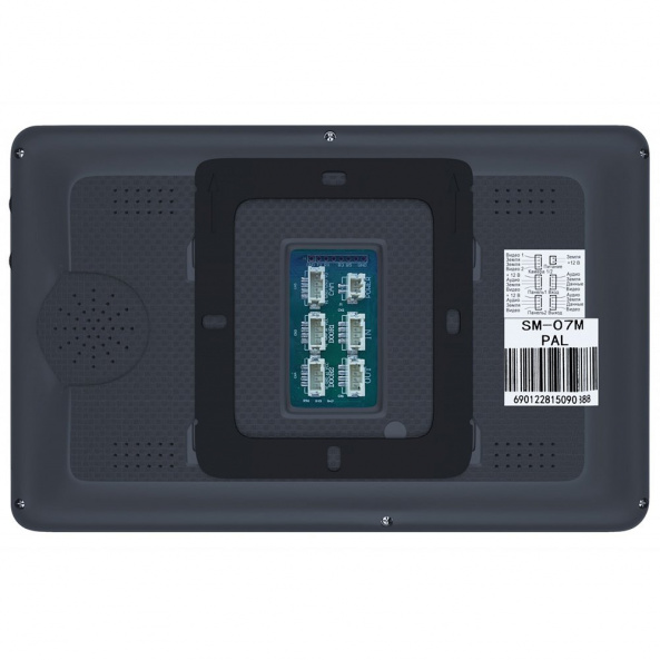 Відеодомофон кольоровий, 7" TFT, 4 канали (2 панелі виклику + 2 відеокамери). Гучний зв'язок, інтерком до 4-х штук (SL-10IP, SL-10M, SL-10, SL-07IP, SL-07T, SL-07, SQ-07M, SM-07M, SM-07, SM-04M, MS-04). Зв'язок домофон-панель: 4-х дротовий. Сенсорні кнопки керування. Регулювання гучності переговорів і гучності мелодій, яскравості, контрастності, кольоровості. Габаритні розміри: 193х123х18мм. Колір: графіт, без трубки.