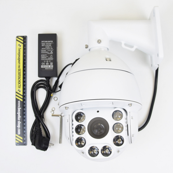 Відеокамера зовнішня купольна SPEED DOME кольорова, керована, Sony + Ambarell A5, з функцією автосопровождения 1 / 2.8 CMOS, 2MP, (1080p) 1920х1080, 4,8-105mm, Зум-20х, 0Lux, ІЧ-підсвічування-200м, RJ45 (ONVIF 2.0), зона дії по горизонталі 0-360, по вертикалі 0-90, швидкість обертання мах-240сек, DC12V 4A, метал, білий.