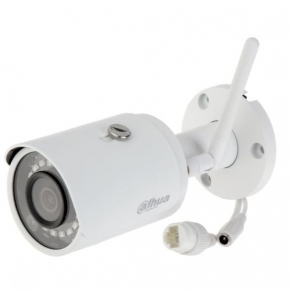 2K Wi-Fi відеокамера Dahua; Матриця: 1/3 "progressive CMOS; Wi-Fi; Компресія (відео): H.264 / H.265; Об'єктив: f = 2.8 мм (кут огляду: H: 106 °; V: 56 °; D: 127 °); Частота кадрів: 20 кадрів / с; Нічне бачення: 30 м, IP67, DC 12 В / 6.5 Вт, Ф 78,5x127,8 мм, 445 г