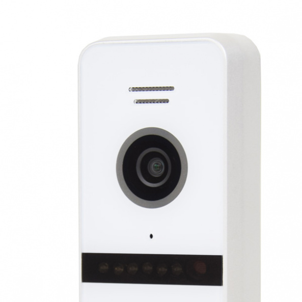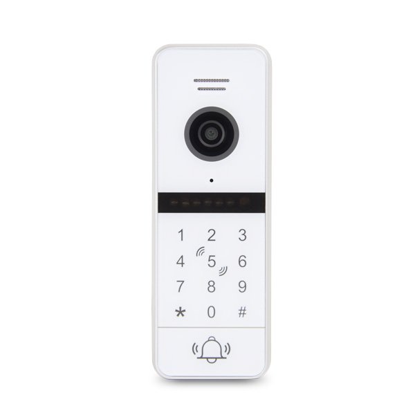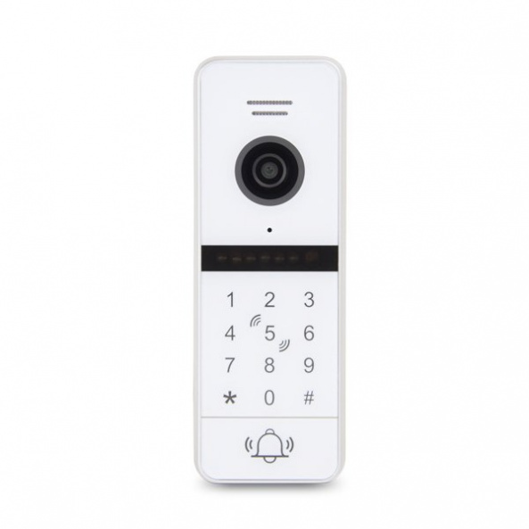 Кольорова накладна відеопанель білого кольору з вбудованою клавіатурою і зчитувачем Mifare (пам'ять на 200 користувачів), з камерою з роздільною здатністю AHD 720P / CVBS 960H, кут огляду 115°. 4-дротове підключення до домофону. Підключення всіх типів електрозамків (NO/NC). Робоча температура -30..+50°С. Живлення DC12V. Розмір 130*45*18мм.