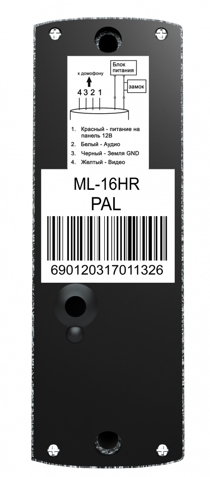 • 4-х дротове підключення до відеодомофона;ТЕХНІЧНІ ХАРАКТЕРИСТИКИ ВІДЕОПАНЕЛІ ML-16HR