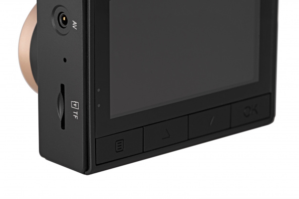 Відеореєстратор з поворотним тримачем, Full HD-записом, матрицею Sony IMX 323, дисплеєм та зручним інтерфейсом керування. Пристрій оснащено об’єктивом з інфрачервоним фільтром, мікрофоном, динаміком та датчиком G, який реагує на удари і захищає фрагменти відео ДТП від перезапису.