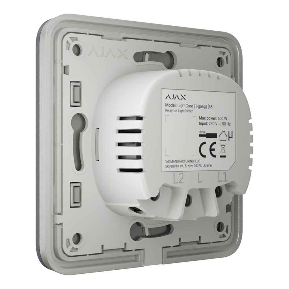 LightSwitch встановлюється без зміни електропроводки об'єкта. Пристрій не потребує підключення до нуля і працює лише від фази живлення.
