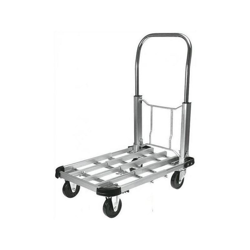 Візок вантажний складаний TOPEX розмірами 70x42 см. Легкий і практичний транспортувальний візок вантажопідйомністю 150 кг. Виготовлений із міцних алюмінієвих профілів, має регульовану висоту ручки у діапазоні 50-70 см. Візок має добротні коліщатка та бампери з пластику. Завдяки можливості складання є дуже зручним у транспортуванні. Маса візка 7,5 кг. Марка TOPEX адресована майстрам, які займаються дрібним ремонтом.