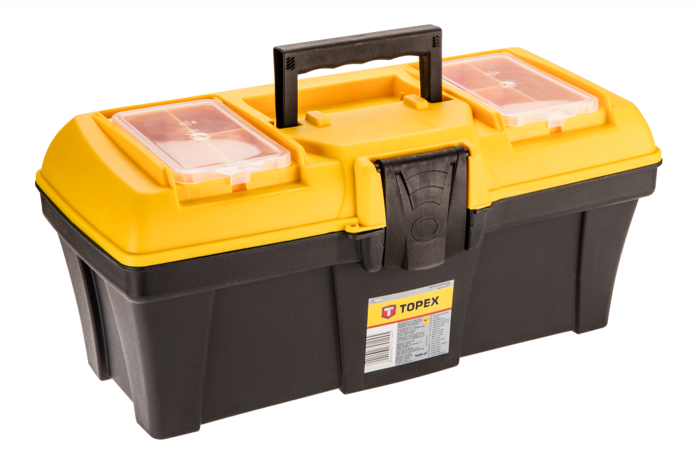 Ящик для інструменту TOPEX - це легкий і зручний ящик для інструменту. Виготовлений з міцної пластмаси. З двома практичними органайзерами для зберігання дрібних елементів і зручною ручкою для перенесення. Бренд TOPEX призначений для домашніх майстрів.