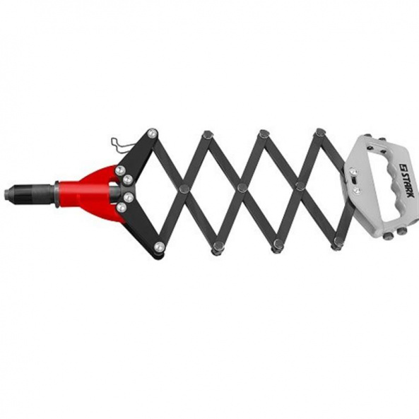 Stark 800 мм - заклепувальний ключ з механізмом «гармошка» для кріплення і з’єднання матеріалів за допомогою заклепки. Підходить для з’єднання пластикових, металевих, шкіряних, гумових та ін.Матеріалів алюмінієвими заклепками.