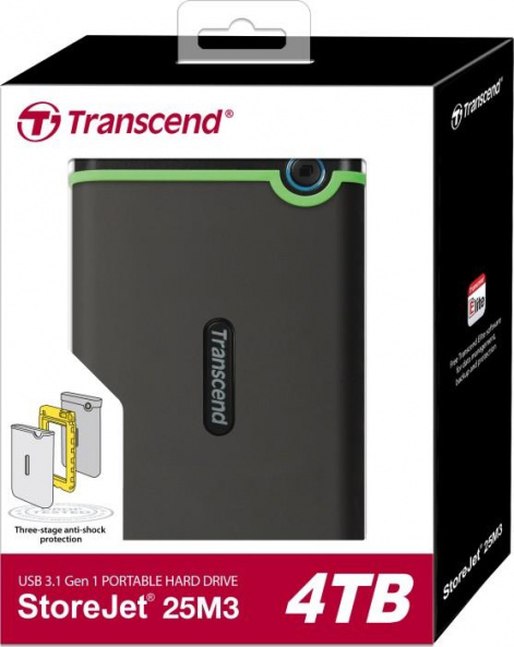 Опис товару Жорсткий диск Transcend StoreJet 2.5" USB 3.1 4TB StoreJet 25M3 Iron Gray