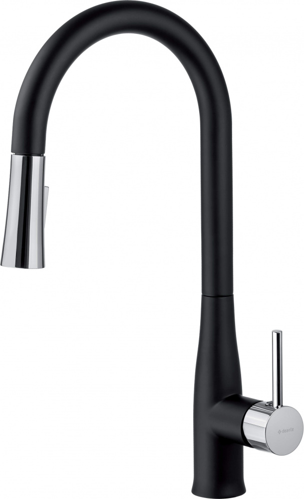 Опис товару Змішувач для кухні Deante Lukrecja, довж.виливу - 229мм, витяжний, 1важіль, чорний-хром