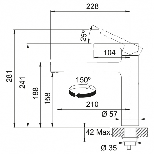 Характеристики товару Змішувач Franke Centro/115.0621.599/з поворотним виливом/одноричажний/сірий камінь