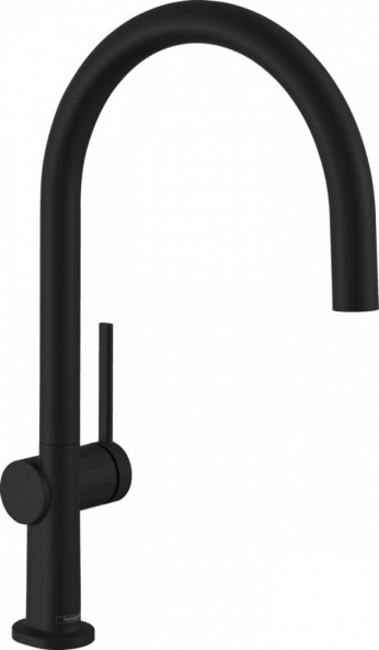 Опис товару Змішувач Hansgrohe Talis M54 для кухонної мийки/72804670/220мм, 1-струменевий/поворотний/важіль збоку/форма округла/чорний матовий