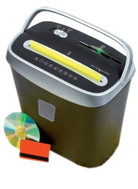 Компактна, зручна модель для персонального використання вдома і в офісі. Перехресна різка, 3-й рівень секретності, розмір фрагментів 5х34мм. Знищує одночасно до 10 аркушів паперу (70г \ м2). Автоматичний старт і стоп, функція реверсу. Знищує CD диски та пластикові картки-в окремому відсіку. Приймає документи, скріплені скобами або скріпками. Термозахист двигуна від перегріву. Має ручку для зручності перенесення. Поставляється з власним кошиком для відходів, обсяг кошика 15л.