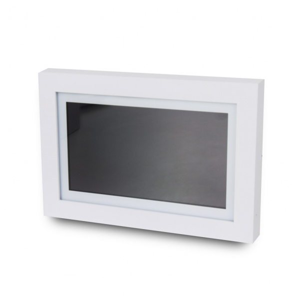 Цветной видеодомофон ARNY AVD-770 ArtLine WiFi с 7-дюймовым сенсорным экраном, IPS матрицей, WiFi и возможностью подключения до 2 видеопанелей, 2 камер AHD/CVBS, 2 датчика к тревожным NO входам. Цвет корпуса белый. В комплекте 3 декоративные сменные рамки: White, Oak, Graphite.