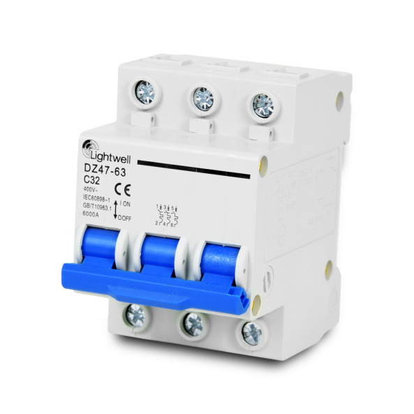 Автоматический выключатель Lightwell MCB 3P 32A устанавливается в электрических щитах на стандартную направляющую DIN-рейку 35 мм и может использоваться как для бытовых, так и для промышленных целей. Он быстро реагирует на перегрузки и короткие замыкания, автоматически отключая электрическую цепь для предотвращения возгорания и повреждения оборудования. Он также может работать в качестве выключателя для цепей нагрузки.