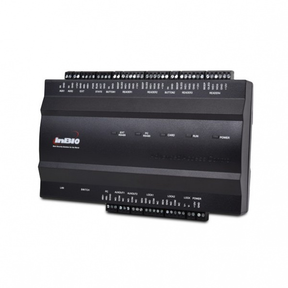 Контроллер InBio260 поддерживает двухдверный одно/двухсторонний контроль доступа. Позволяет подключить 4 внешних биометрических считывателя ZKTeco inBio / 4 считывателя Wiegand.