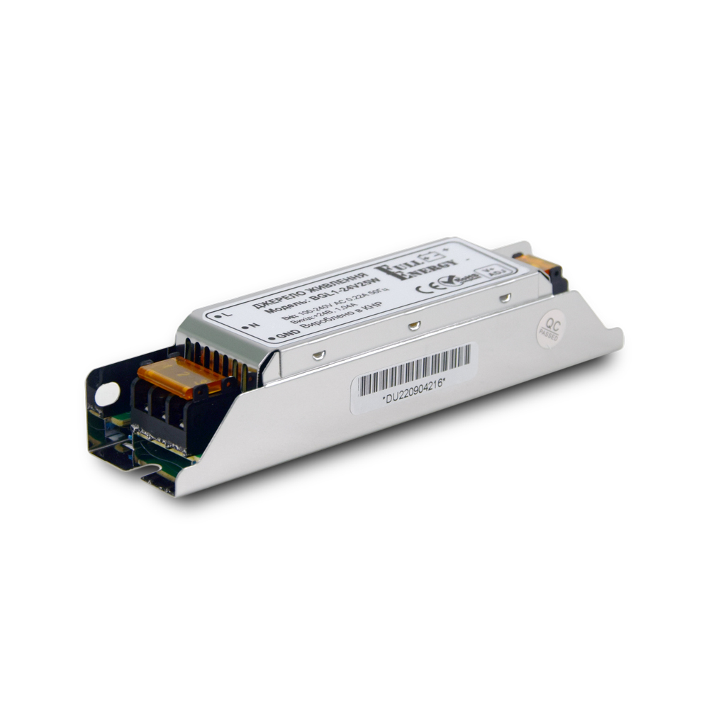 Блок питания (преобразователь) для LED ленты, одноканальный, выход: 24 В / 1.04 А, клеммник; вход: AC 100 - 264 В, клеммник; мощность 25 Вт; металлический корпус. Размеры 140 x 40 x 32 мм.