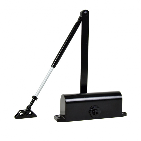 A-062 Black доводчик верхнего монтажа с рычажной передачей. Полукоммерческое использование, наработка на отказ 500.000 циклов. Усилие закрывания DIN 4 (вес двери 60-85 кг, ширина до 1300 мм). Функция Hold-Open. Цвет - черный. Габаритные размеры тела доводчика: 203 x 73 x 67 мм. Вес тела доводчика: 1160 г. Размеры упаковки: 303 x 90 x 80 мм. Вес упаковки: 1840 г