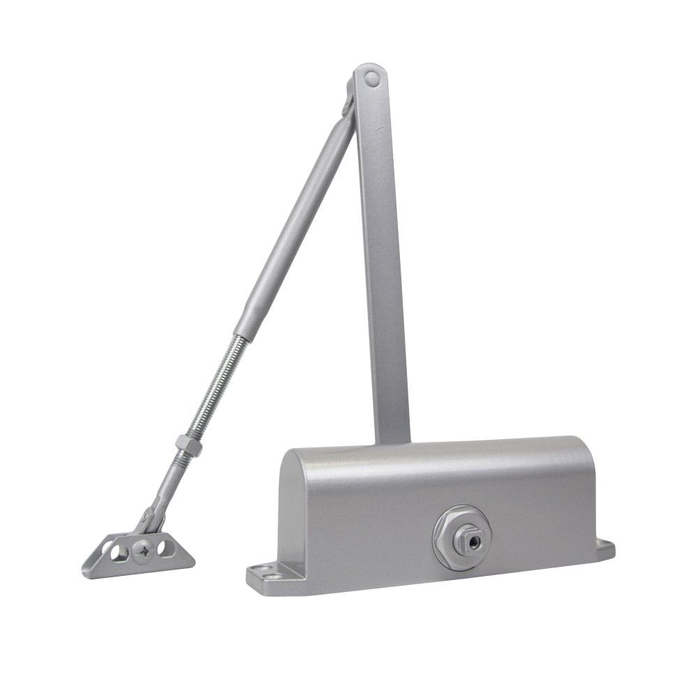 A-062 Silver доводчик верхнего монтажа с рычажной передачей. Полукоммерческое использование, наработка на отказ 500000 циклов. Усилие закрывания DIN 4 (вес двери 60-85 кг, ширина до 1300 мм). Цвет - серебро.