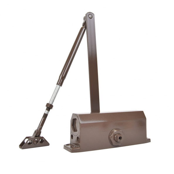 A-165 Brown доводчик верхнего монтажа с рычажной передачей. Полукоммерческое использование, наработка на отказ 500000 циклов.Усилие закрывания DIN 4 (вес двери 60-85 кг, ширина до 1300 мм). Цвет - коричневый.