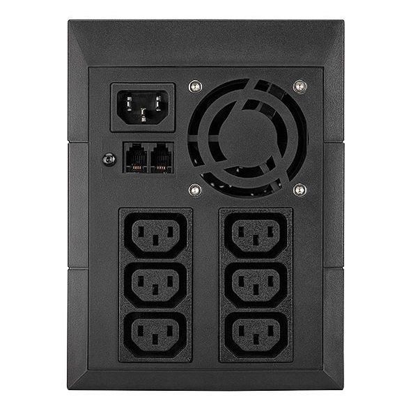 ИБП линейно-интерактивный. Мощность: 2000 ВА / 1200 Вт. Входное напряжение: 170-280В. Выходное напряжение: 230В. Форма выходного напряжения: аппроксимированная синусоида. 2 АКБ 12В емкостью 9Ач. Выходные разъемы: 6 IEC С13 (10 А). Размеры 330 х 180 х 133 мм