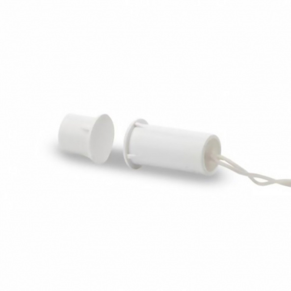 Датчик открытия магнитоконтактный (геркон) на металлические поверхности, врезной тип установки, корпус пластиковый, дежурный режим - 8 мм, режим тревоги - 15 мм. Цвет: белый.