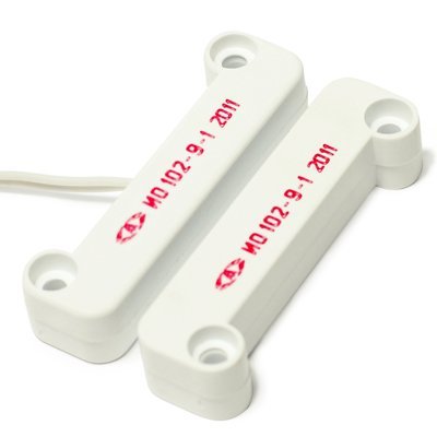Датчик открытия магнитоконтактный (геркон) на деревянные и пластиковые поверхности, накладной тип установки, корпус пластиковый, дежурный режим - 15 мм, режим тревоги - 40 мм. Цвет: белый.