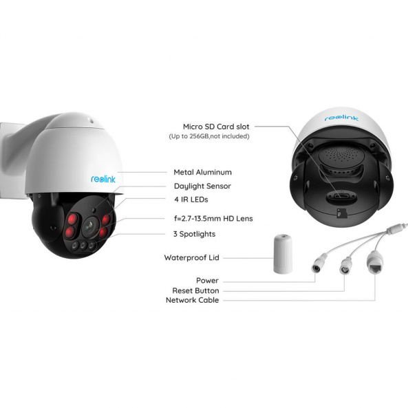 IP камера Reolink RLC-823A – умная 8-мегапиксельная PTZ-камера PoE с прожекторами. RLC-823A достаточно умна, чтобы отличить человека, транспортное средство или домашнее животное от других объектов. Когда RLC-823A обнаружит кого-то подозрительного, его прожекторы и сирена включатся. Благодаря панорамированию на 360° и наклону на 90°, RLC-823A может контролировать удивительно большую площадь с помощью одной камеры безопасности. Она также может автоматически отслеживать перемещение человека/транспортного средства. Благодаря технологии Power over Ethernet (PoE) эта PTZ IP-камера может одновременно передавать видео и заряжаться через один сетевой кабель. Вы можете настроить зону движения по своему усмотрению, определив, где движение объектов будет обнаружено, а где нет. RLC-823A предназначена для использования в различных условиях. Прочный корпус позволяет этой камере выдерживать мощные струи воды, сильную жару, влажность и холод.