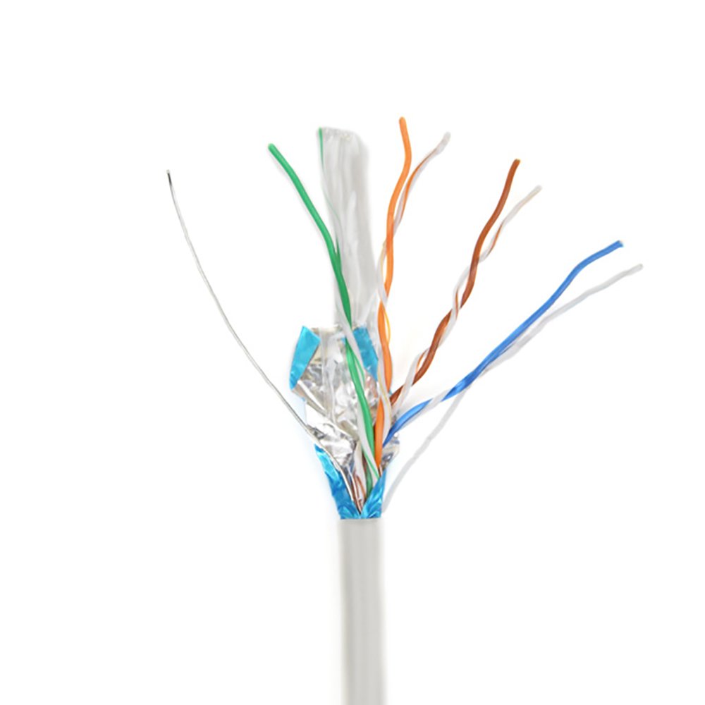Сетевой кабель FTP (витая пара с экранированием). 8 жил по 0.5 мм. Экранирован. Материал проводника - медь (Сu). Внешняя оболочка - ПВХ. Бухта - 305 м. Напряжение - до 60 В. Сопротивление 28.5 Ом / 305 м