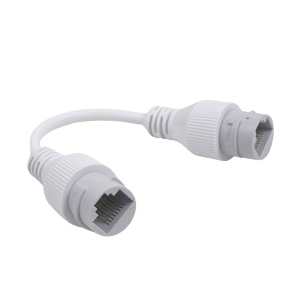 Влагозащищенный переходник гнездо RJ-45 - гнездо RJ-45 на кабеле. Предназначен для соединения 2-х компьютерных кабелей сети Ethernet.