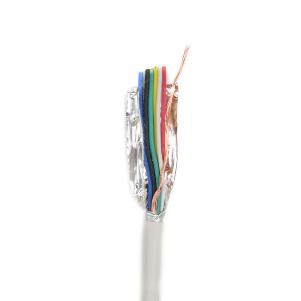 Сигнальный кабель для систем сигнализации. 6 жил по 0.22мм. Экранирован. Материал проводника - медь (Сu). Внешняя оболочка - ПВХ. . Напряжение - до 60В. Сопротивление 9 Ом x 100м. Цена указана за метр