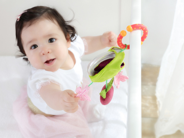 Кліпса – багатофункціональний виріб: це й іграшка для дитини, і аксесуар для дитячої коляски. До того ж, завдяки універсальному кріпленню кліпсу можна прикріпити не лише до коляски, а й до ліжечка чи автокрісла. Іграшка з підвісками – 2 квіточками і полуницею. Підвіски цікаво шелестять, чим привертають увагу дитини і сприяють розвитку її тактильних відчуттів. З такою іграшкою дитина не занудьгує в дорозі, залюбки бавитиметься нею під час прогулянок у колясці чи поїздок в авто. Для дітей з народження.