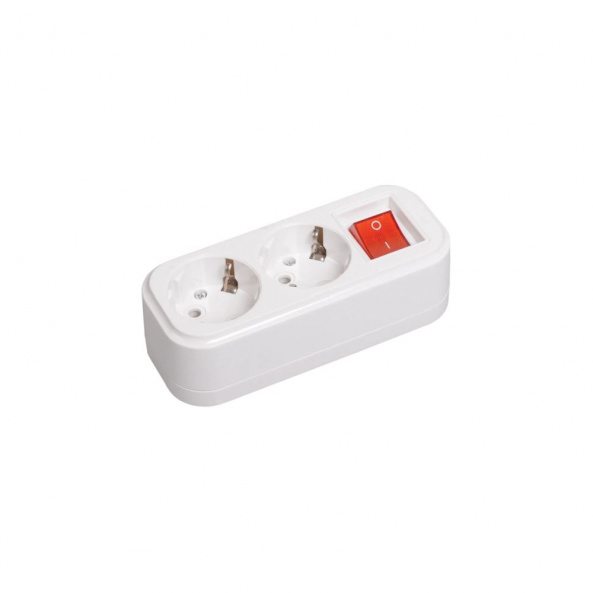 Колодка на 2 гнезда с заземлением и выключателем. Позволяет подключить 2 прибора к одной сети, но мощность нагрузки не должна превышать 3600 Вт. Номинальный ток: 16 А. Степень защиты: IP20