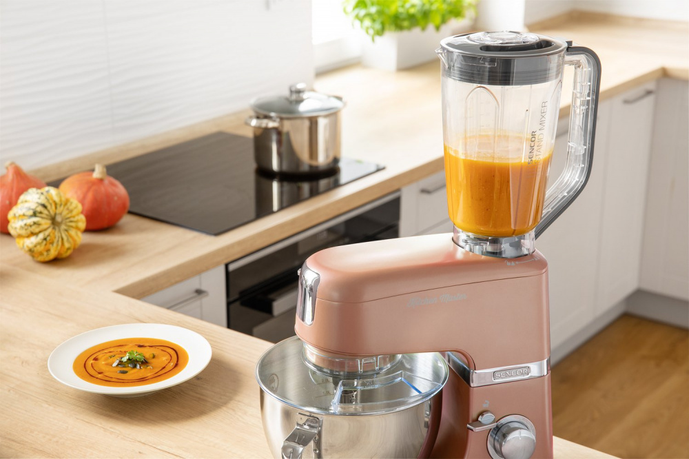Очень мощный двигатель 1 000 Вт с гарантией на 6 лет. Массивный цельнометаллический корпус с металлическими деталями привода. Конструкция с 3 выводами. Светодиодный дисплей с индикацией времени работы кухонного комбайна и функцией отсчета времени. Sencor Smart Power&Energy – обеспечение оптимальной скорости. Чаша объёмом 4,5 л из нержавеющей стали с мерной шкалой. Чаша объёмом 3 л с мерной шкалой. 1,5 л миксер из материала ТРИТАН BPA FREE.