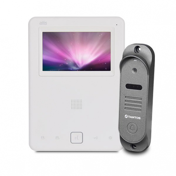 Состоит из цветного видеодомофона белого цвета ATIS Eva 4.3" с экраном 4.3 дюйма и сенсорными кнопками управления и цветной вызывной панели черного цвета Tantos Stich Black с разрешением 800ТВЛ и накладным способом установки.