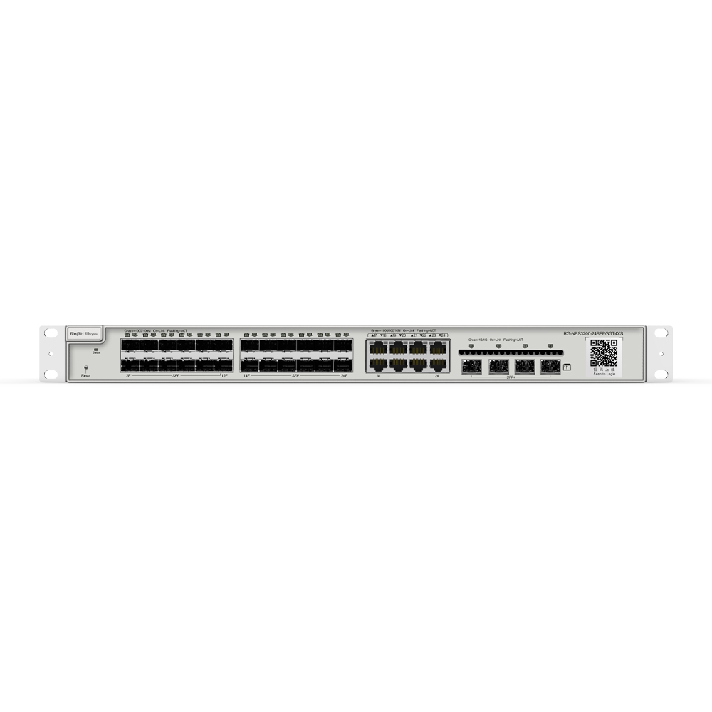 Ruijie Reyee RG-NBS3200-24SFP/8GT4XS — это 24-портовый L2 управляемый коммутатор с поддержкой 10G, произведенный компанией Ruijie Networks. Коммутатор имеет 24 порта SFP (SFP: порты 100/1000M), 8 комбинированных портов 10/100/1000Base-T, а также 4 порта SFP+ 10GBase-X