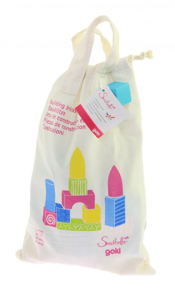 Створіть своє власне кольорове місто разом із дерев’яним конструктором німецького виробника іграшок goki. В комплект конструктора входять 50 різнокольорових блоків, виготовлених із натуральної деревини, вкритої яскравими фарбами на водній основі, що утворюють дивовижні візерунки. Деталі мають різноманітну форму: кубічну, прямокутну, циліндричну, конусну та арочну. Дерев’яний конструктор «Susibelle» розвиватиме моторику, просторове і образне мислення, конструктивні здібності та сприйняття кольору. Він постачається у фірмовому мішечку і підходить для дітей від 2-х років.