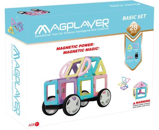 Magplayer – інноваційний сучасний конструктор, для складання якого не потрібні інструменти чи скріплювальні деталі. Особливість елементів Magplayer у тому, що вони намагнічені по периметру. Набір складається з 28 деталей у вигляді геометричних фігур – квадратів, трикутників, півкіл. Варіативність фігур дозволяє побудувати численні конструкції. Магнітне кріплення надійне: фігури будуть міцні, стійкі. Особливість комплекту – наявність коліс для складання транспортних моделей. Набір для дітей від 3 років.