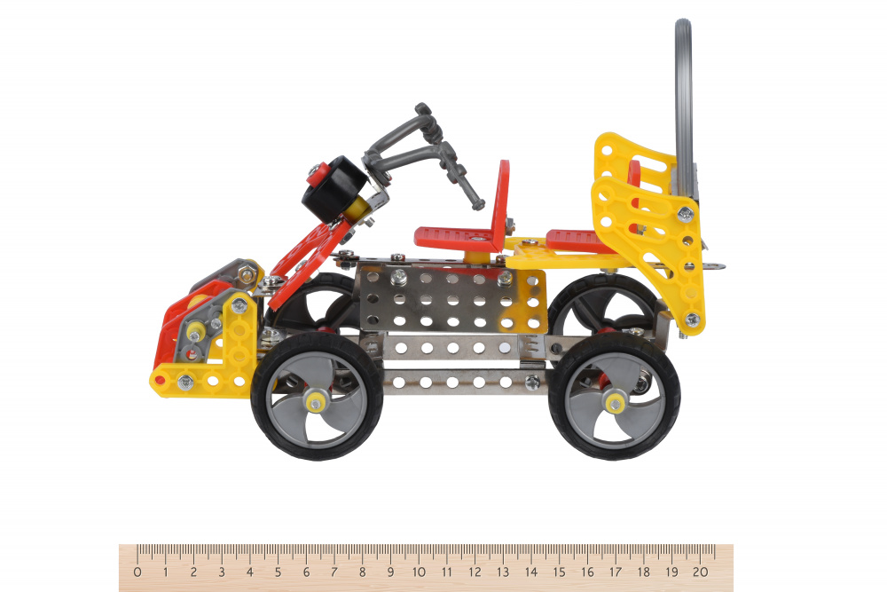 Побудуй фантастичну модель власними руками! Розвиваюча гра-конструктор від Same Toy дозволить дитині побудувати фантастичний байк або ж вигадати власні конструкції. Із таким набором дітлахи залюбки гратимуть у сюжетно-рольові ігри із побудованими фігурами. Набір складається із металевих і пластикових деталей, поєднуються за допомогою гвинтів та гайок. У комплект входить інструкція зі схемою поєднання основних груп елементів, а серед 175 деталей є викрутка і гайковий ключ для зручності та надійності кріплення. Такий конструктор розвиватиме у дітей дрібну моторику, логіку та уяву. Рекомендовано дітям від 8-ми років.