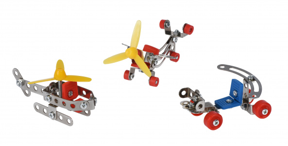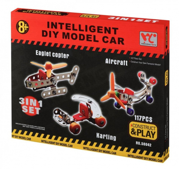 Розвиваюча гра-конструктор «Набір 3 в 1» від Same Toy дозволить дитині побудувати гелікоптер, спортивний карт і літальний апарат. Або ж сконструюй свою власну фантастичну модель! Із таким набором дітлахи залюбки гратимуть у сюжетно-рольові ігри про транспорт. Набір складається із металевих і пластикових деталей, поєднуються за допомогою гвинтів та гайок. У комплект входить інструкція зі схемою, а серед 117 деталей є викрутка і гайковий ключ для зручності та надійності кріплення. Такий конструктор розвиватиме у дітей дрібну моторику, логіку та уяву. Рекомендовано дітям від 8-ми років.