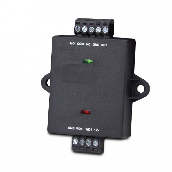 Контроллер-реле для управления 1 дверью. Совместимость: терминалы и контроллеры ZKTeco с поддержкой Wiegand. Интерфейс связи: шифрованный Wiegand. Питание: DC 12В 60мА. Размеры 50х40х17 мм