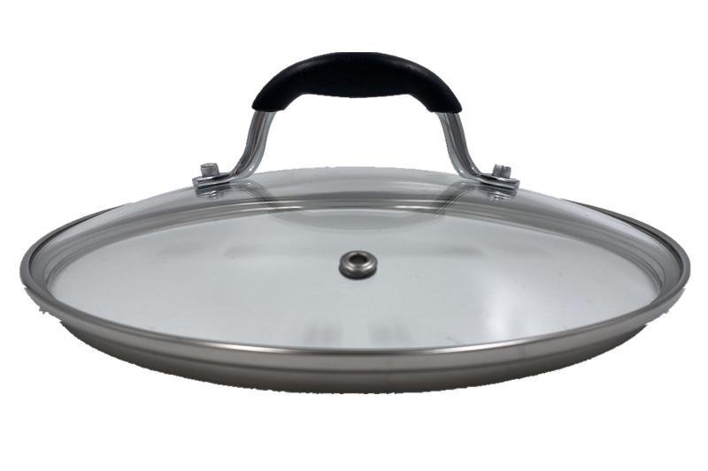Крышка из термостойкого стекла с отверстием для выпуска пара. Ручка из нержавеющей стали и силикона. Для очистки крышки можно использовать посудомоечную машину.