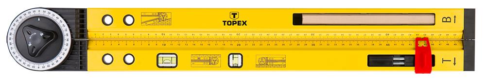 Имеет угломер с рабочим диапазоном 0°- 270°, уровень длиной 500 мм с двумя ампулами, линейку длиной 50 см, возможность закрепления столярного карандаша, благодаря чему может использоваться в качестве циркуля. Крепежный винт облегчает измерение углов. Бренд TOPEX предназначен для домашних мастеров.