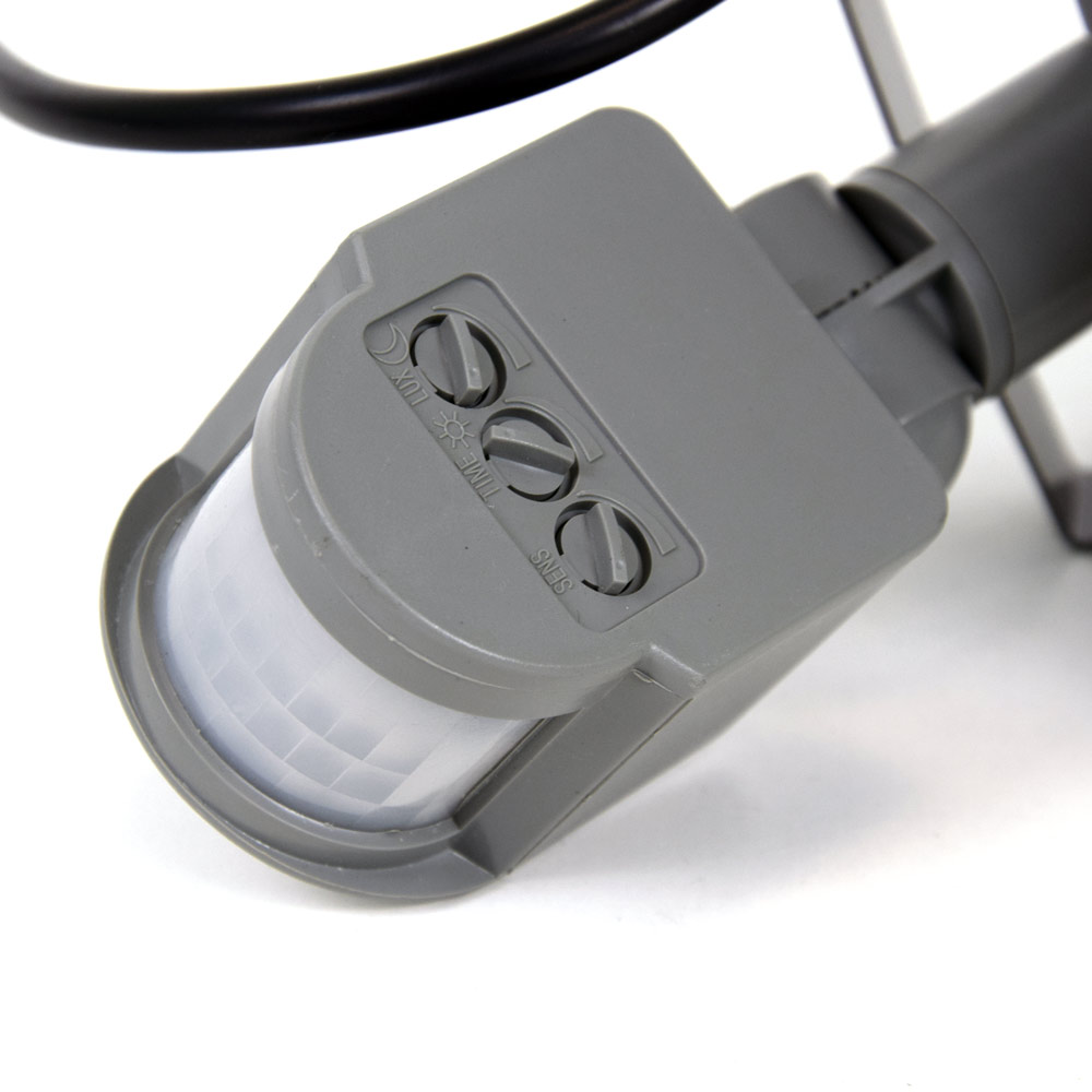 Эта модель оборудована автоматическим датчиком, который включает свет при обнаружении движения возле прожектора, что обеспечивает наличие освещения только тогда, когда оно нужно, и продлевает срок службы прожектора. Дальность срабатывания от 4 до 12 метров, угол охвата — 90°. На датчике можно настроить расстояние обнаружения от 4 до 12 метров. Регулируется чувствительность к освещению — в какое время суток будет работать датчик. Регулируется таймер срабатывания датчика.