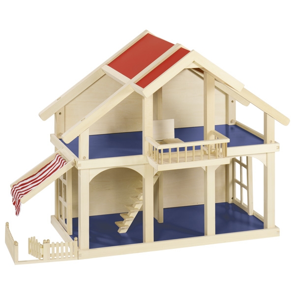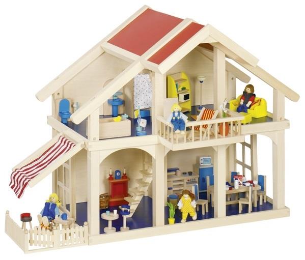 Деревянный игрушечный дом в два этажа непременно оценит любая девочка. Вилла имеет балкон, внутренние лестницы, мансарду и несколько окошек. Ваша маленькая принцесса может стать дизайнером собственного дома и украсить его необходимыми аксессуарами, которые можно приобрести отдельно. Домик разработан для удобства использования: девушки с легкостью смогут разместить мебель и кукол на втором этаже. Двухэтажный кукольный домик немецкого производителя игрушек goki сделан из натуральной древесины и отвечает всем стандартам безопасности. Игрушечный домик станет замечательным подарком и поможет девушкам развивать воображение, фантазию, моторику и навыки дизайнера.