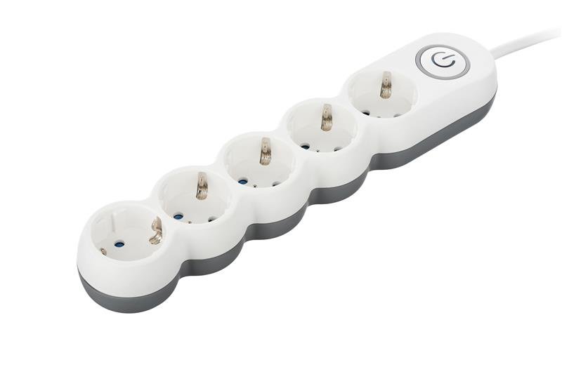 Сетевой фильтр 2Е Plus на 5XSchuko розетки Тип F (евророзетка) с заземлением, с выключателем, со шторками для защиты детей. Особый дизайн. Подсветка кнопки включения - синим.