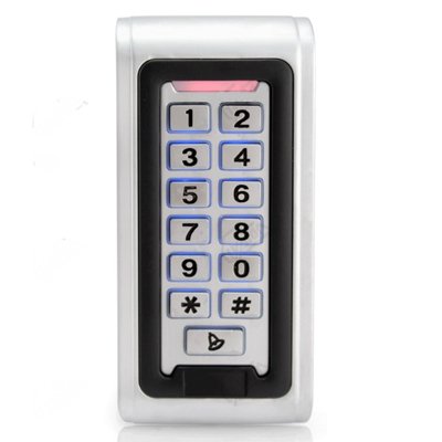 Кодовая клавиатура, встроенный считыватель проксимити , 2000 кодов и карт, расстояние считывания карт до 6см, импульсный режимы работы, металлический корпус, степень защиты: IP55, рабочее напряжение DC 12V/0.03A, выход реле ( NO,COM,NC), звонок, кнопка выхода, сирена, интерфейс Wiegand 26, датчик состояния дверей
