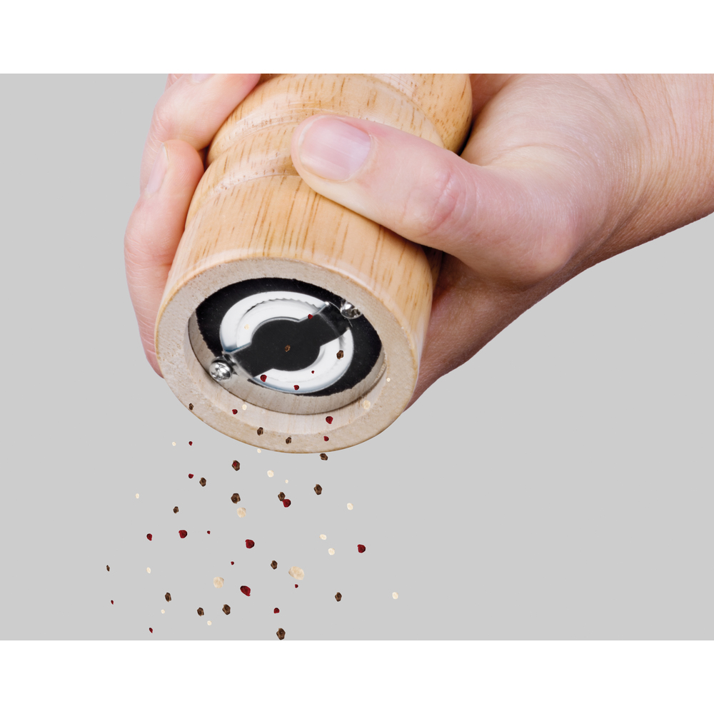 Мельница для специй/перца/соли с регулировкой грубости размола выполнена из дерева с керамическим механизмом для размола. Управление осуществляется с помощью ротационного механизма.